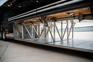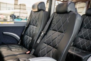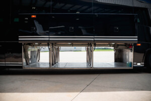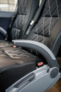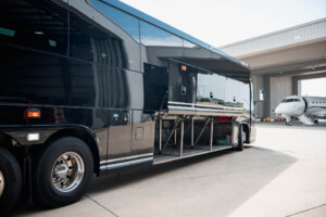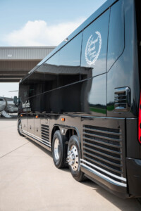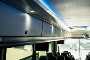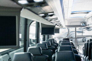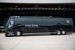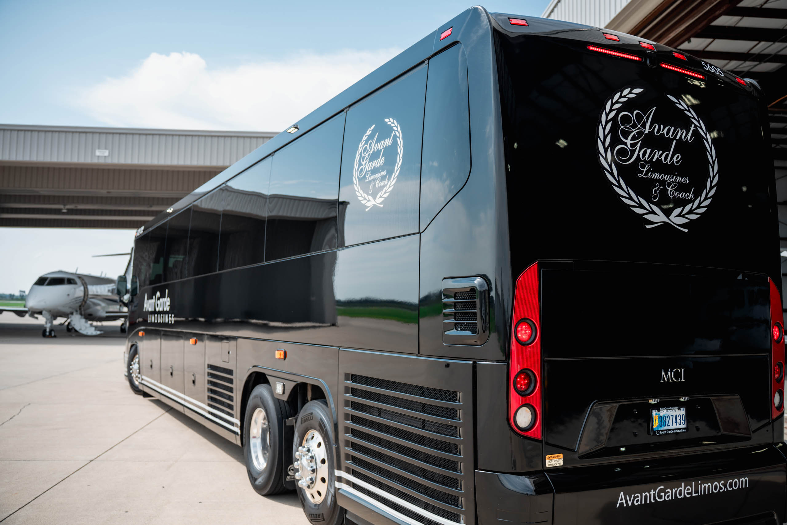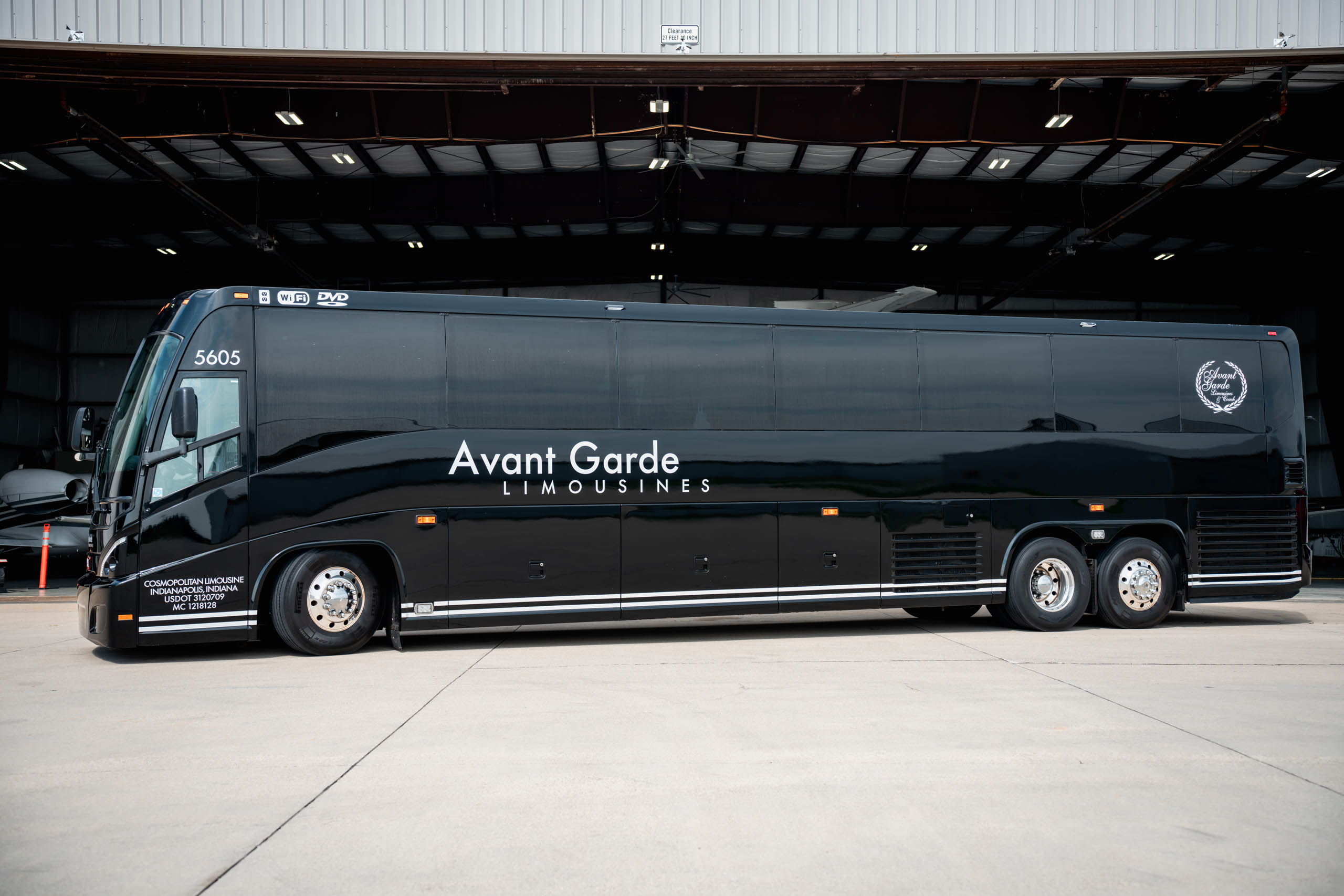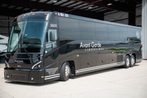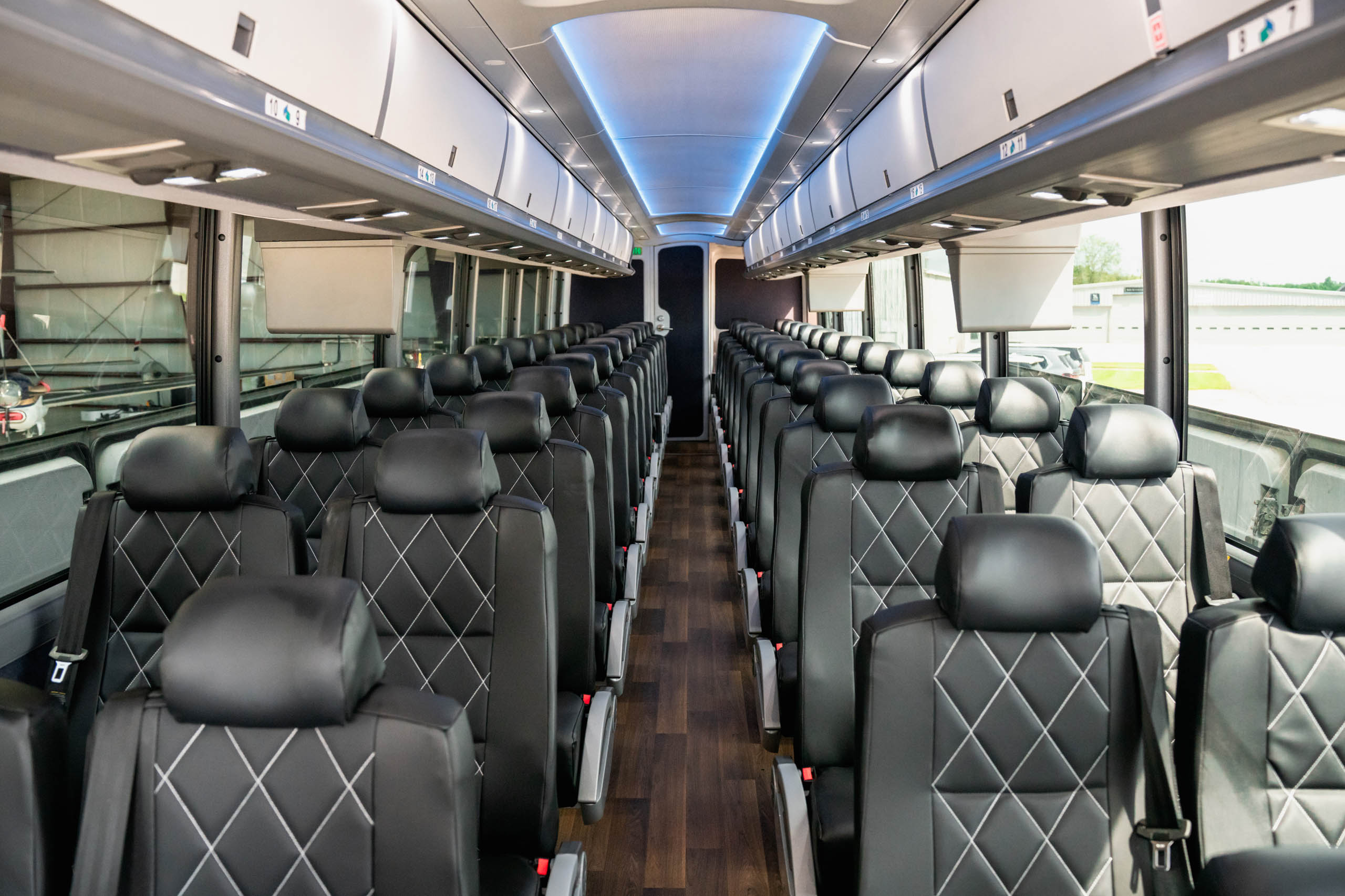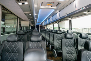 When your needing to move a large group our 56 passenger MCI motor coaches is the perfect choice! Whether it’s for local use or going across the country, our 56 passenger executive motor coaches wont disappoint. With plush black leather reclining seats and full air ride suspension it will feel like your floating on a cloud while driving down the road. While on the road you can enjoy high speed internet, while watching your favorite foot ball time with our in-motion satellite TV on 6 overhead monitors, 110V power outlets and the on board lavatory.