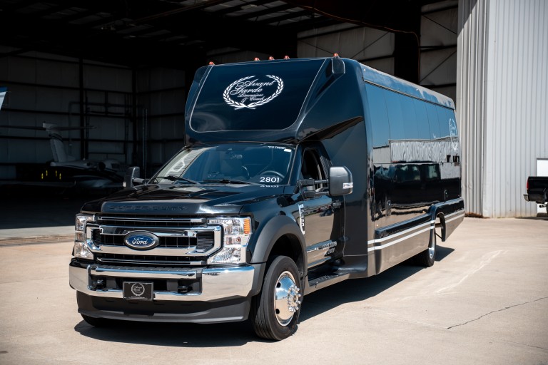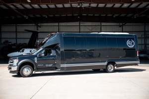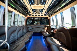 Looking for a way to transport your large group of friends in a safe and festive manner? Then the Limo Coach is the perfect choice! This party bus offers all the amenities of a limousine but also has the space and seating of a bus. Our Limo Coach features leather seating that wraps around the entirety of the spacious interior, one bar area, ample leg and head room, rear luggage space, and fiber optic lights. From bachelorette parties, to casino trips, to weddings and sporting events our Limo Coach will keep the party going. Impress your friends and celebrate your special occasion in this spectacular vehicle.